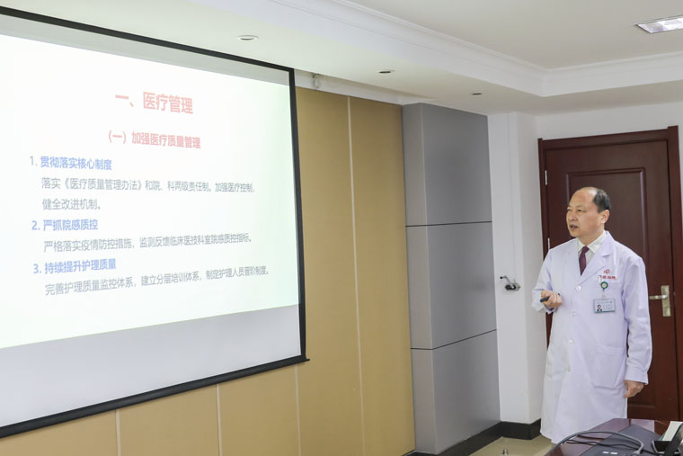 王校长就大家关于医疗、教学、科研、党风廉政建设、人才队伍建设、后勤基建、防疫抗疫、落实医改任务、医院发展规划等汇报给予充分肯定,就现存困难提出了合理化意见和可行性建议,对医院实现高质量发展提出要求部署。王校长指出,一是要持之以恒强化理论武装,二是要不断完善医院管理体系,三是要持续加强人才队伍建设,四是要切实提升科技创新能力,五是要进一步规范医疗服务行为,六是要切实强化安全管理。王校长表示,学校将认真梳理我院提出的意见建议,深入研究、精心谋划,提供切实的帮助与支持。