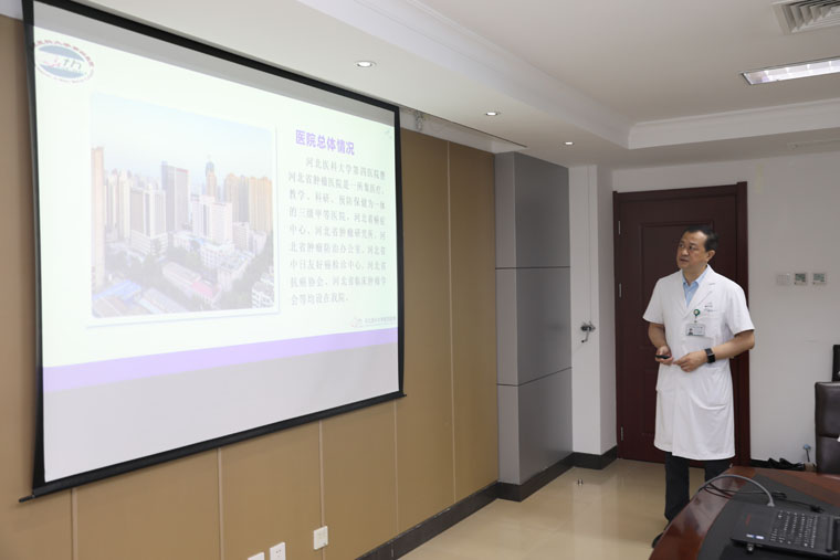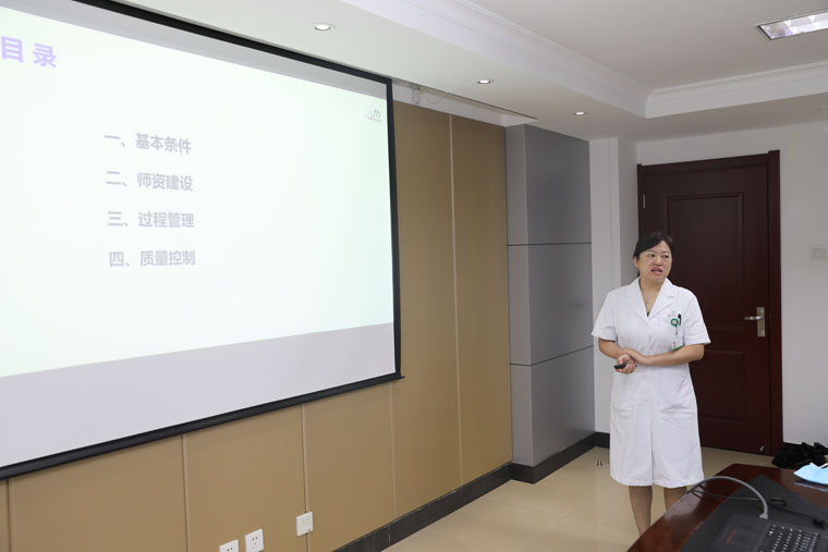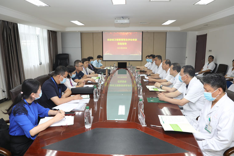 徐金升院长主持会议。霍瑞鸣一级主任科员就评估目的与要求进行介绍。单保恩书记对专家组莅临指导表示欢迎,他指出,住培工作是医院的重点工作之一,医院高度重视此次省级评估工作,这是一次全方位检验医院和各专业基地教学能力、教学水平、教学效果的契机,是向兄弟医院学习的机会,更是包括医教研等各方面全方位交流的平台。我们将按照各位专家的意见,进一步提升住培工作质量。赵群副院长就医院总体情况及住培重点工作进行汇报。