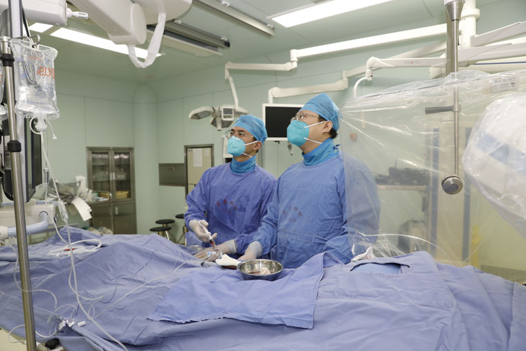 5年前曾行PCI术的一名患者因“心绞痛”再次入院,该患者冠心病史已有20余年,频发心绞痛且伴有严重的高血压、糖尿病等基础性疾病。如何既能有效治疗,又能避免胸骨正中开胸的巨大创伤?这是摆在大家面前的一道难题。经过心血管内科马景涛教授团队和心脏血管外科赵永波副主任团队的缜密磋商,最后决定行“PCI(经皮冠状动脉介入治疗术)+小切口冠状动脉搭桥术”。关键时刻,DSA复合手术室成功解除燃眉之急。