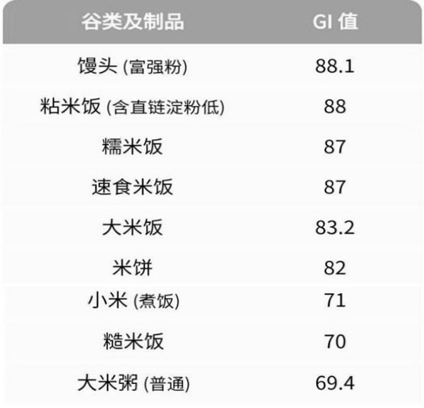 不同食物的血糖生成指数