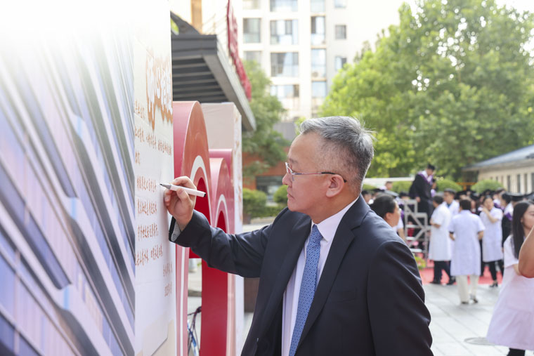 针对毕业生即将开启的职业新征程,李立平书记以“最后一课”的形式提出4点殷切期许:一要做有温度的医者,既要以精湛医术减轻患者痛苦,更要以温暖关怀抚慰患者心灵,切实践行“舒适化医疗”理念;二要做有深度的专家,保持终身学习的热情,在临床实践中锤炼技艺,在学术探索中勇攀高峰;三要做有高度的行者,严守职业底线与诊疗规范,始终保持清醒头脑与正直品格,系好职业生涯"第一粒扣子";四要做有担当的栋梁,将个人理想融入国家卫生健康事业大局,牢记“健康所系、性命相托”的誓言,为“健康中国”建设注入青春力量。