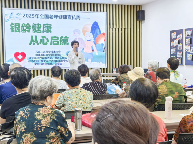 次日,我院老年医学科联合石家庄市科学技术协会走进社区,开展科普宣传活动。老年医学科主任张静指出,我国已进入中度老龄社会(60岁及以上人口突破3.1亿,占比22.0%),加强老年人健康综合管理、提升健康素养尤为重要。活动特别聚焦老年心理健康主题,河北省生命关怀协会理事闫然带来《老年人情绪识别技巧与疏导方法》专题讲座,我院老年医学科副主任医师蒋怡芳则围绕《懂健康知识,做健康老人》展开科普宣教。之后,老人们纷纷就健康管理问题与专家深入交流,普遍表达了对常态化开展此类活动的期待。